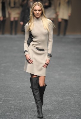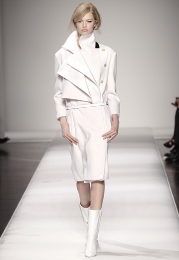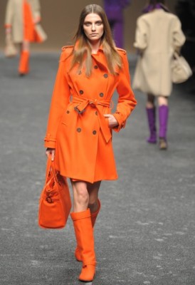 A grande surpresa da noite, porém, foi a Blumarine, onde Anna Molinari deixou o romantismo sexy de lado e partiu para um inverno minimalista, com referências ao Mod dos anos 60, muitas mini saias, jaquetinhas, pantalonas, suéteres de tricôs, casacos e trenches. A coleção começou neutra, com bege e preto mas logo ganhou boas doses de cor com amarelo, laranja, roxo, verde e azul.