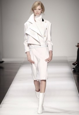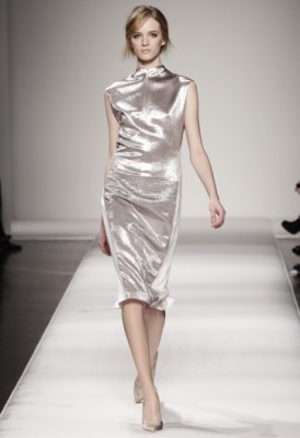 Tomasso Aquilano e Roberto Rimondi já são craques na alfaiataria para a Gianfranco Ferré, só que desta vez as formas estavam mais sexies, com tecidos transparentes alternados aos brilhosos (prata e ouro velho) em tailleurs de saias midi e casacos de lapelas largas.