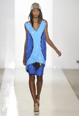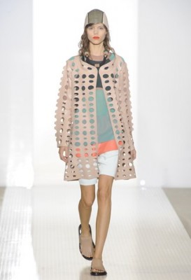 Marni: Consuelo Castiglioni fugiu dos lugares-comuns da estação e abusou da inspiração esportiva, principalmente do ciclismo, mergulho e surfe, combinando materiais nobres e bordados com formas simples e silhueta ajustada. Túnicas, jaquetas curtinhas, tops com zíperes e bermudas coladas apareceram em tons pastel e vibrantes, em estampas florais, couro perfurado, rendas e até paetês!