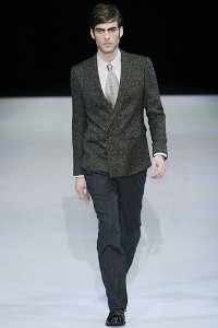 A passarela da Emporio Armani foi invadida por uma profusão de verdes. Eles vieram em calças de cintura mais alta usadas com jaquetas de couro, enormes casacos de veludo que literalmente “envelopavam” vários looks, colarinhos de pele e parkas. Na verade, parece que o estilista resolveu resgatar seus clássicos, quase como num estudo da história da marca. E nesse clima de resgate, o que se viu na passarela foram jacketas desestruturadas e calças menos secas.  Destaque para o look mais para o fim do desfile, uma espécie de “ski wear”, talvez o mais moderno da coleção, apesar das sugestões vintages que fazem parte do universo do estilista. Uma coleção sem novidades mas que cumpriu a função de atualização dos novos clássicos criados pela marca através de novos materiais e cores.