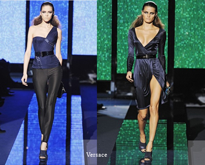 Versace – Despida de tantos excessos, a Versace apresentou um inverno comedido que aposta nos metalizados em tons de preto, cinza e azul. Muitas calças skinny com bolsos laterais, ótimos casacos-vestidos e  trench-coats de ares modernos. Donatella não esqueceu os vestidos fluidos cheios de drapeados, decotes, fendas e recortes, peças-chave do universo Versace, que deixam qualquer mulher sexy. Vermelho, rosa e tons de pele apareceram no final da apresentação.