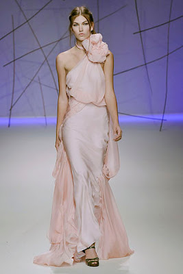 Na Ungaro foi a estréia de Esteban Cortazar, de apenas 23 anos, à frente do estilo. Considerei que a Ungaro estava colorida pois a imagem que tenho (e acho que a maioria das pessoas tem) da marca é o uso de cor. Talvez para quebrar essa tradição, o estilista decidiu não usar muitas cores, apenas uns toques de rosa e muito cinza. Uma pena, pois as formas estavam muito boas, especialmente as com amarrações e torcidos. As estampas também não estavam lá muito alegres. Anyway, vamos esperar a próxima para ver se ele “pega o jeito”.