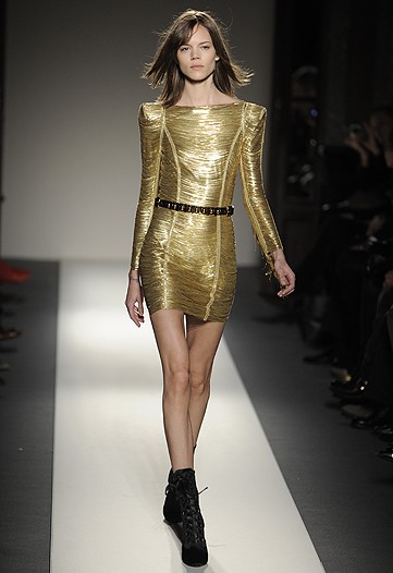 Balmain: em time que está ganhando não se mexe. E como a Balmain está faturando alto, a fórmula de Christophe Decarnin permanece: muito anos 80, glam rock, brocados, bordados e brilhos. Além dos micro vestidos, com fendas e decotes ultra V, o destaque foi para os terninhos de calças boot cut de cintura baixa e blazers justinhos. No mais, muito dourado nas jaquetas de lamê, blusas de tecido transparente com gola lenço, terno em risca-de-giz e alguns casacos de pele coloridos em branco e roxo, os outros tons da coleção.