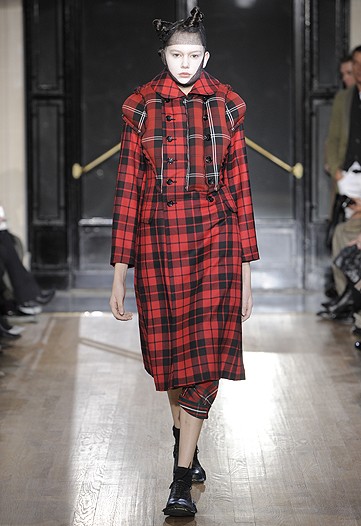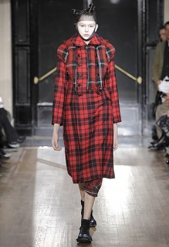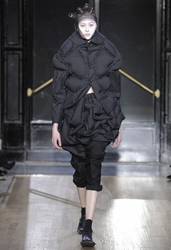 Comme des Garçons: Miuccia Prada deu luz à discussão sobre a volta das curvas femininas em seu desfile. Será que Rei Kawakubo também tinha uma mensagem desse tipo por trás de seus looks “boneco da Michelin”? Muitos enchimentos aumentaram consideravelmente os volumes de casacos, vestidos, blazers e saias da coleção. Mas não há nada de novo aí, já que a estilista adora brincar com proporções. Na cartela também estavam suas marcas registradas: preto, branco, cinza, marinho e xadrez.
