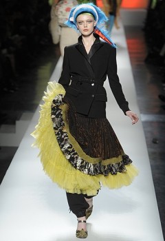 Jean Paul Gaultier: uma versão fashion do “It´s a small world” da Disney é a melhor definição deste outono/inverno do estilista. Como ele já está acostumado aos temas étnicos sabe como evitar as armadilhas de tudo parecer figurino. Assim, do Alaska à Ásia havia referências para todos os lados: jacquards orientais, calças harem, florais de rosas espanholas, colares, turbantes e tricôs africanos, xadrez vichy… Mas no meio disso tudo, estavam lá blazers risca-de-giz e peças esportivas que funcionam em qualquer lugar do mundo.