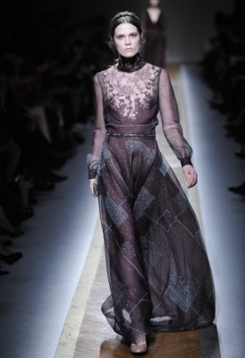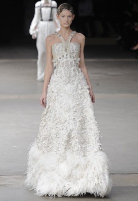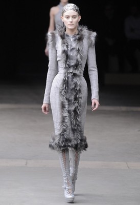 De onde Alexander McQueen estiver, deve estar feliz de saber que sua grife está nas maravilhosas mãos de Sarah Burton. Em sua segunda coleção à frente da marca, a estilista emocionou com todos os elementos que tornaram as roupas do ex-chefe um sucesso. O tema do desfile, “A rainha de gelo e sua corte”, era bem ao estilo McQueen, imediatamente nos fazendo pensar em uma história dramática. Mas vamos às roupas: tailleurs com aplicações de peles e zíperes abriram o show, seguidos de looks ligeiramente sado-masoquistas com tiras de couro, até finalmente aparecerem os longos cheios de detalhes e volume, com bordados, plumas e micro babadinhos, dignos de uma rainha (será que a futura rainha da Inglaterra vai usar algo semelhante no dia 29 de abril?).