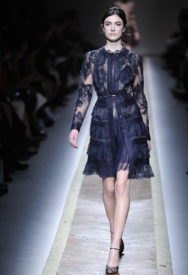Na Valentino, Maria Grazia Chiuri e Pier Paolo Piccioli aos poucos vão imprimindo uma nova identidade à grife. Mantendo a consistência das últimas temporadas, estavam lá as mini saias, os tecidos transparentes, as rendas, os laços e as aplicações de flores em tailleurs, vestidos plissados e longos de seda no final. Na cartela, nudes e tons pastel de verde e rosa, além de marrom e vinho.