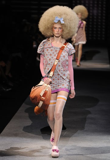 Louis Vuitton: cabelos Black Power, looks que misturavam esporte, street, militar, anos 80, jeans…ufa. Marc Jacobs fez uma verdadeira salada de excessos com muitas cores, muitas sobreposições, plumas e frufrus. Blazers e saias/vestidos curtos dominaram a coleção que teve ainda bolsas enormes, a maioria transpassada, e a volta dos mocassins e tamancos.