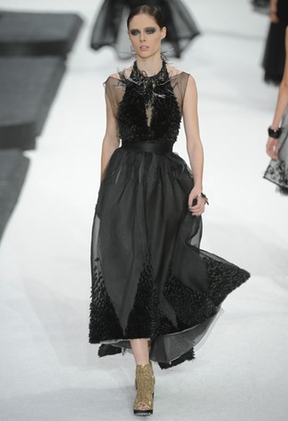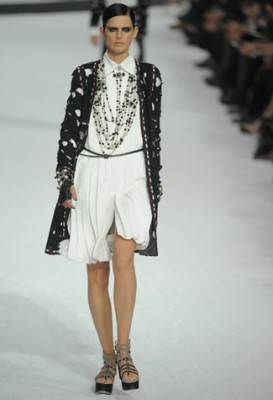 Foram simplesmente 87 looks desfilados em um jardim de mármore e pedras! Depois de ter colocado um iceberg na passarela, Karl Lagerfeld precisou se superar e, claro, não precisou de muito esforço. A inspiração inicial veio do filme “Last year at Marienbad” cujo figurino foi feito por Coco. Porém, o que se viu na passarela foi uma explosão de técnicas de alta-costura unida à modernidade e informalidade que são de rigor na moda atual (jeans com “pingos” e rasgos!).