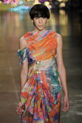 Amapô: a coleção mais escapista da temporada propunha uma viagem psicodélica/rasta, com muitas estampas manchadas e coloridas, além de brincadeiras com a alfaiataria. No final tinha até um vestido no estilo Elizabeth I!
