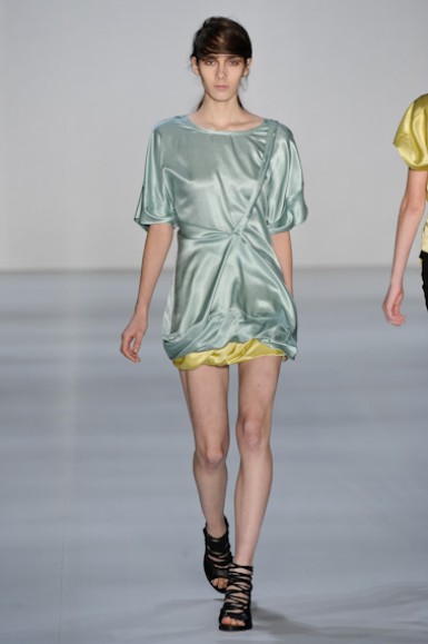 A estréia da portuguesa Ana Salazar no SPFW não empolgou. Com fortes referências ao desconstrutivismo belga, em peças assimétricas e “metades” díspares, a estilista investiu em rendas, musselines e chiffons com acabamentos tecnológicos, peças em couro e muitos detalhes de zíperes.