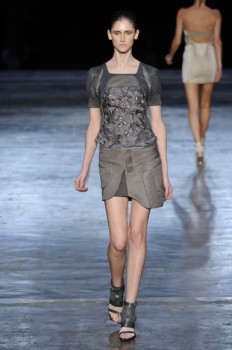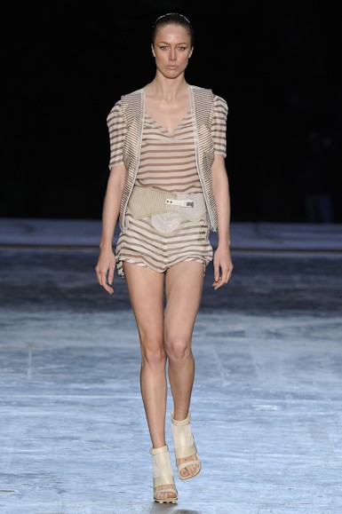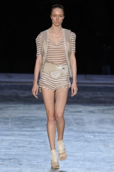 Raquel Zimmermann abriu o desfile com um shortinho e blusa listrada, maxi cinto e colete de listras mais fininhas – causando um efeito ótico interessante. E foi assim com os outros looks, em tons de nude, lilás e cinza, que mixavam o tecnológico e o artesanal, em mini saias e vestidos, transparências, calças retas e atenção total nos detalhes, em cada material que forma e diferencia cada peça. A cliente Animale é maior beneficiada, pois desta vez pode visualizar bem o que sai do desfile e pode ser comprado nas lojas.