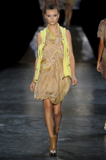 Sedas e tules se misturam em vestidos curtos com repuxados e golas cheias de bolsa. Os casacos de tricô (sempre um ponto forte da marca) combinados às bermudas de bainha italiana são os looks dos dias outonais. As calças metalizadas são ótimas para a noite. E lá vem de novo as jaquetas, com relevos fantásticos. E lá vem de novo a Raquel Zimmerman, exclusiva da Animale. O quarto dia se encerra, e já dói pensar nos preços de tantas peças fantásticas quando chegarem às lojas…