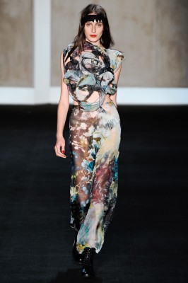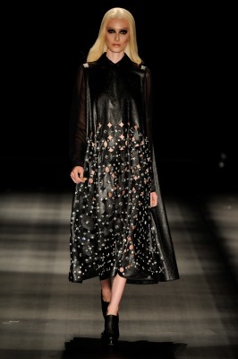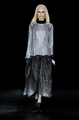 Já Fause Haten, com sua FH, mesclou preto com cinza e muito brilho num desfile inspirado no “nada” em que as formas amplas e peças que lembravam vestidos de crianças de antigamente foram recorrentes.