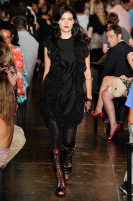 No penúltimo dia de SPFW, o preto dominou as passarelas. Na coleção de Marcelo Sommer (Do Estilista), por exemplo, ele estava nos vestidos leves e transparentes de poás, revezando com tons de rosa e bege nas peças com muitos laços e jeitinho vintage, desfiladas por suas amigas e tops Luciana Curtis, Mariana Weickert, Ana Claudia Michels, Isabela Fiorentino, Cássia Ávila, entre outras. Todas usando pesadas botas militar.