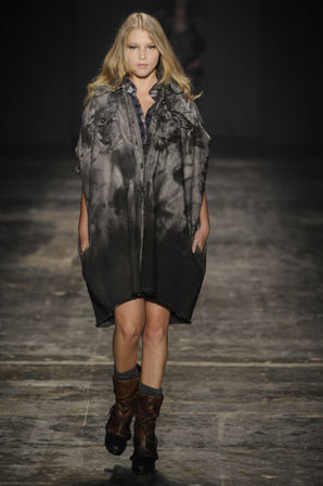Diante de um telão onde pedras rolavam sem parar, a modelo Aggyness Deyn (um dos rostos mais clicados pelo mundo em 2008) abriu o outono/inverno 2009 da Ellus em desfile duplo: o primeiro reservado para a imprensa e o segundo aos convidados. Aggyness vestia um macacão cáqui e rústico folgado, daqueles típicos de operários, com botas brutas que combinaram com seu andar. O topete loiro era a única coisa esvoaçante ali.