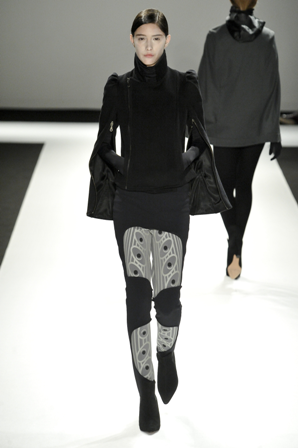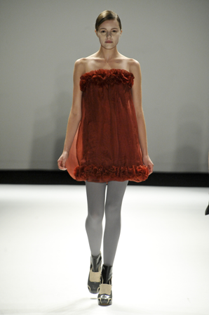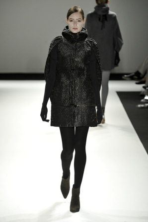 Glória Coelho desfilou seu inverno no Shopping Iguatemi, inspirada na Duquesa que foi abduzida por um E.T. Excêntrico, como é característico da estilista. Seu inverno é escuro e cheio de volumes, e com curiosas mangas que saem das costas, fazendo com que braços fiquem à mostra a partir do cotovelo. Não são peças fáceis, mas os fãs fiéis da marca devem gostar. Muitos vestidos e poucas saias no desfile onde preto, branco e cinza foram entremeados de dourado e um vermelho e um azul que pontuaram a passarela. Glória traz estampas e brilho de cristais aplicados.