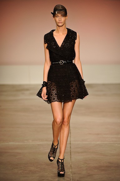 Mais uma vez, Valdermar Iodice pensa em uma mulher sexy para o verão da Iodice. Comprimentos curtos, decotes tomara que caia e um ombro se repetem neste déja vu. A coleção seria mais bem explorada se fosse fundo nos tecidos que imitavam uma renda (eram cortados a laser) e representavam bem um aspecto de brasilidade na coleção.