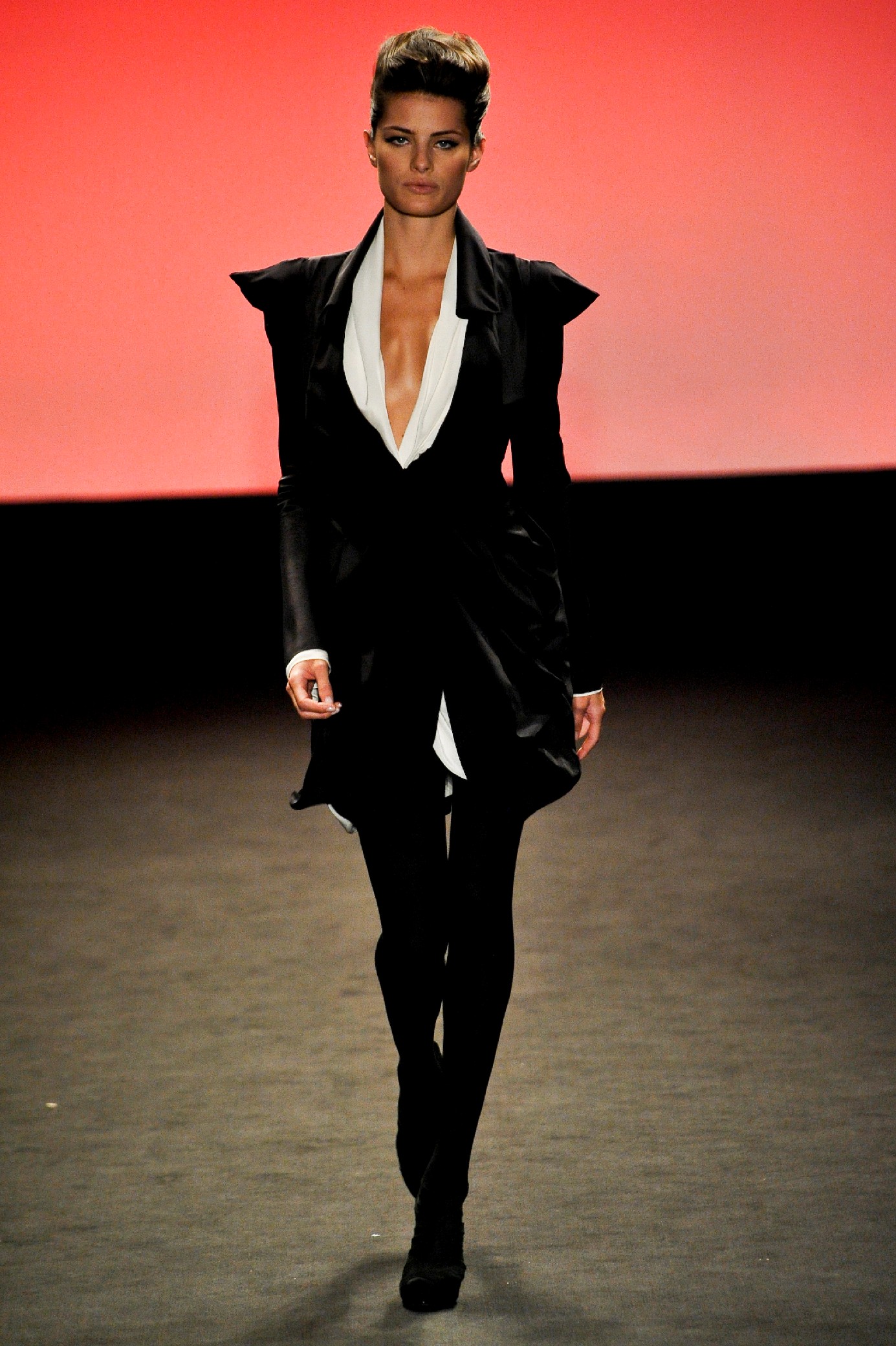 Alguns looks vermelhos entraram em mais de um desfile onde o preto predominou, e onde o futurismo criou a imagem de uma mulher poderosa.