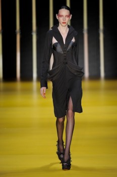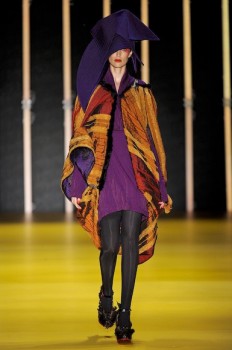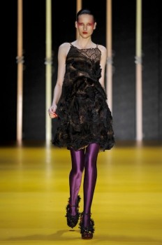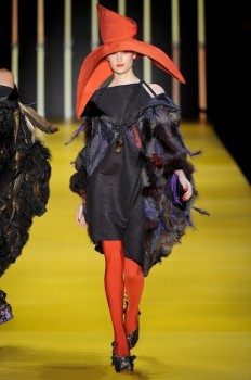 O comprimento ideal – na altura dos joelhos – está bem definido nos vestidos, que apresentam volumes bem estruturados ou nos mais sequinhos e fluidos. Para complementar o visual, meias grossas 7/8 opacas ou coloridas e, se o vestido for realmente mais formal, meias finas. Atenção para o acessório pelo qual toda a sala suspirou: os chapéus. Grandes, rígidos – de um jeito não obvio me fizeram pensar em Elsa Schiaparelli. (Amei!)