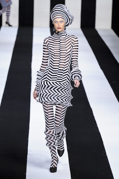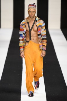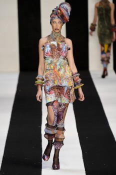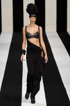 Seus experimentos nos tecidos, com cortes, texturas e efeitos merecem aplausos, assim como a explosão de cores, os acessórios loucos e a beleza (aqui aplausos pra equipe de cabeleireiros e maquiadores também). Desta vez, looks com efeito op-art se misturavam a peças que lembravam arlequins e colombinas, e como ele queria passar uma idéia de sexualidade, vários decotes, meias vazadas com cintas-ligas, transparências e sutiãs no feminino, enquanto no masculino os modelos usavam camisetas com V profundo e calças de gancho bem baixo.