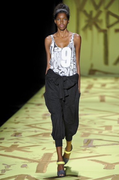2010 está aí. 20 anos se passaram desde 1990, ou seja, é hora da década do minimalismo e do grunge ganhar uma releitura de peso. E foi assim na passarela da Maria Garcia. A estilista Camila Cutolo fez um mix dos ritmos musicais da década (hip hop e r&b principalmente), investiu em formas amplas, com várias modelagens emprestadas do guarda-roupa masculino e deu um bom toque de streetwear.