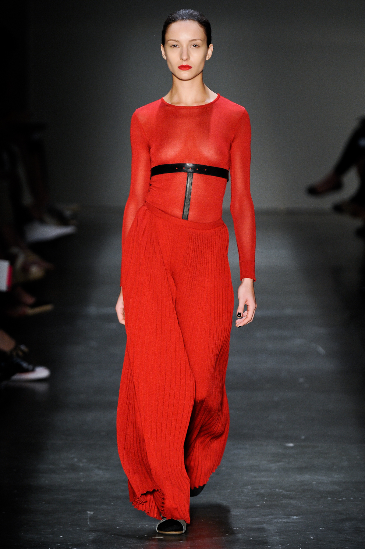 O segundo desfile do dia foi a estréia da Ghetz, uma marca de tricôs criada para impulsionar a carreira do talentoso Lucas Nascimento, com a ajuda do diretor criativo Giovanni Bianco. Com cores vivas (vermelho, roxo, azul) e looks ajustados ao corpo, além de pantalonas plissadas, transparência e uma estampa que na verdade era tricô, a mensagem principal é que artesanato e tecnologia podem fazer uma bela união.