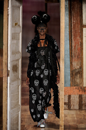 A silhueta, tanto feminina quanto masculina, era solta, com túnicas, saias acima dos joelhos, bermudas e calças confortáveis. A cartela iniciou com preto e terminou com laranja, passando pelo off-white e pelas múltiplas cores das estampas. Estavam lá também as referências à Frida Kahlo, ao artesanato local (nas peças vazadas), ao Dia dos Mortos (nas caveiras bordadas) e também à Disney, nas estampas com cara de Mickey, Zé Carioca, Pato Donald e companhia e nos looks finais, com tecidos com os personagens enrolados no corpo dos modelos. Bravo!