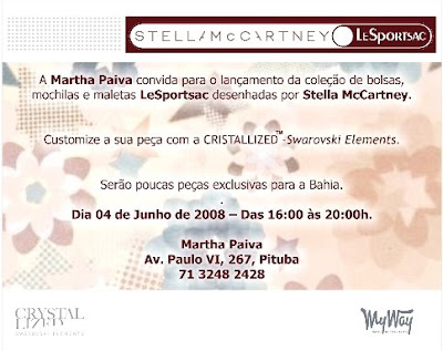 No dia 09 de junho, dei uma nota no site contando que a coleção de bolsas da LeSportsac by Stella McCartney está à venda na Spezzato, com exclusividade. No mesmo dia recebi um email do asssessor de imprensa da loja Martha Paiva, maior multimarcas de luxo da Bahia, dizendo que as bolsas também estão à venda lá. Baianas, aproveitem!!!