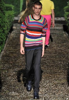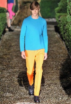 Numa coleção de silhuetas puras, Raf Simons colocou o destaque nas cores vibrantes: pink, azuis, amarelos e laranjas apareceram em blazers, camisas e shorts. Listras e florais também ganharam destaque. Confira algumas fotos.