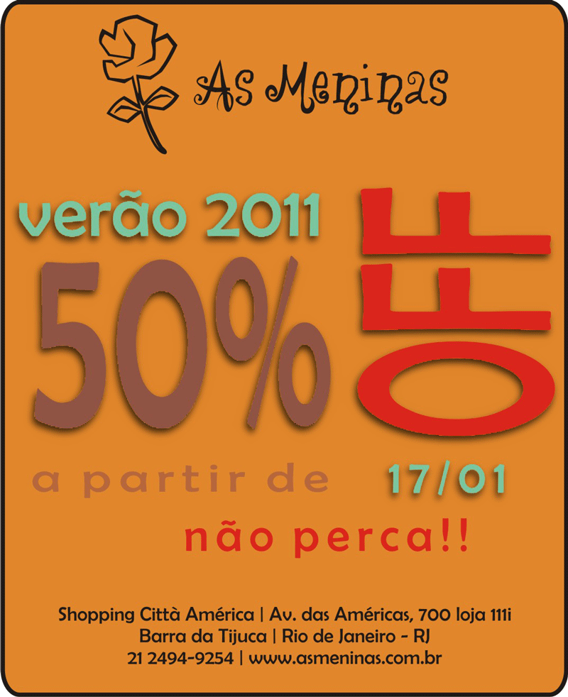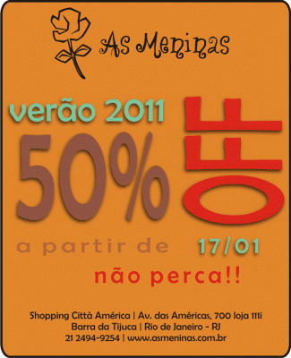 Já a grife As Meninas oferece desde a última segunda, descontos de 50% na coleção de verão 2011.