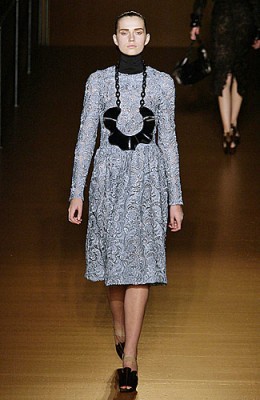Desde que Miuccia Prada colocou renda em sua passarela para o outono/inverno 2008-09, o material ganhou novo status. Agora, com o romantismo e a feminilidade em alta, as rendas reaparecem com força total, em diversos modelos, sobretudo aplicadas em tecidos transparentes. Confira: