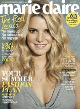 Agora, a Marie Claire francesa de abril dedicou a edição inteira, com exceção das propagandas, a fotos sem retoques. A versão americana seguiu o exemplo e fez o desafio à cantora Jessica Simpson que topou posar sem maquiagem e não ser retocada. O impacto é grande já que estamos tão acostumadas a ver imagens “photoshopadas” que nos levam a comparações desleais… Para levantar a autoestima, veja esse vídeo da modelo Natasha Poly sendo retocada.