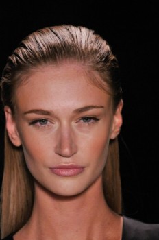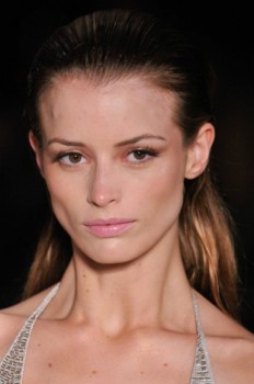 – como verão é tempo de pele bronzeada, o blush cobre é a pedida. Bronzants, pós iluminadores e tonalidades terrosas foram as mais vistas nas bochechas das modelos.
