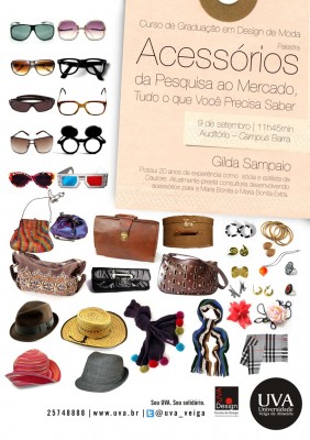 Acontece hoje, às 11h30, a palestra “Acessórios: da Pesquisa ao Mercado – Tudo o que Você Precisa Saber” com a consultora Gilda Sampaio no campus Barra da Universidade Veiga de Almeida. Gilda que é consultora das marcas Maria Bonita e Maria Bonita Extra, falará da sua experiência de 20 anos à frente da marca Dautore, como sócia e estilista. O evento é gratuito e aberto ao público.