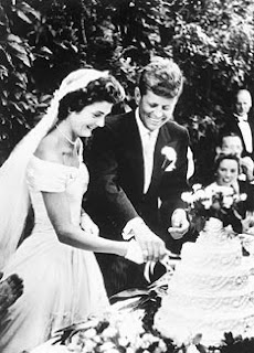 Alguns anos antes, em 53, do lado oposto do Atlântico, outro ícone de estilo casava-se com o futuro presidente do EUA. Jacqueline Bouvier Kennedy escolheu um vestido que deixava os ombros à mostra, de uma estilista pouco conhecida, chamada Anne Lowe. Para o seu segundo casamento, com Aristóteles Onassis, em 68, Jackie usou um Valentino, que à essa altura já era famoso e amigo da ex-primeira dama. Em 1996, sua nora, Carolyn Bessette, trouxe Narciso Rodriguez para o mapa da moda quando vestiu um de seus modelos minimalistas em seu casamento com John Kennedy Jr.
