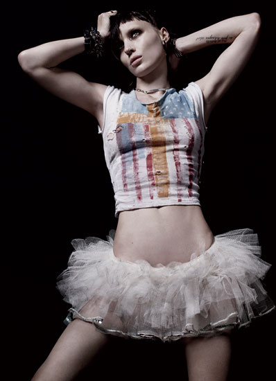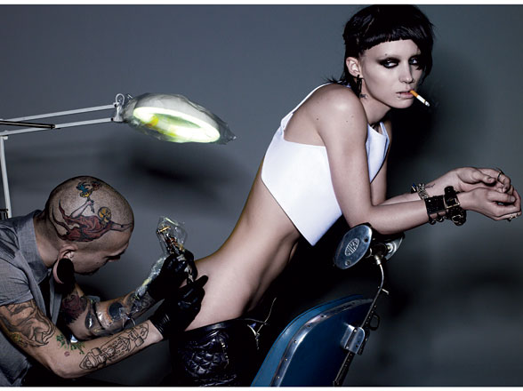 No editorial, Rooney posa com looks techno-punks e conta sobre as transformações que precisou fazer para o papel: vários piercings no rosto, cabelos radicalmente cortados e a tatuagem do titulo, que é temporária. Clique nas fotos para aumentá-las.
